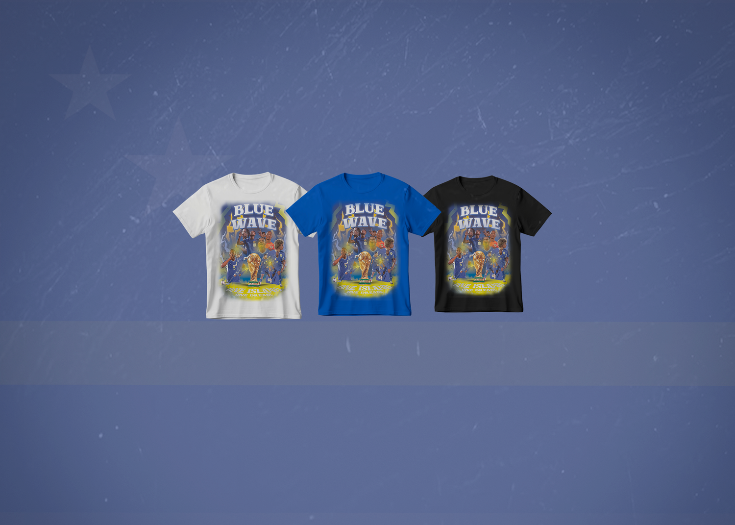 Celebrate history with this special edition Blue Wave T-shirt, honoring Curaçao’s legendary rise as the smallest nation ever to reach the World Cup. Featuring powerful artwork of the team, vibrant island colors, and the iconic trophy at center stage, this design captures the pride, determination, and unity of a nation that defied all odds. Small Island. Big Dreams. One historic moment.